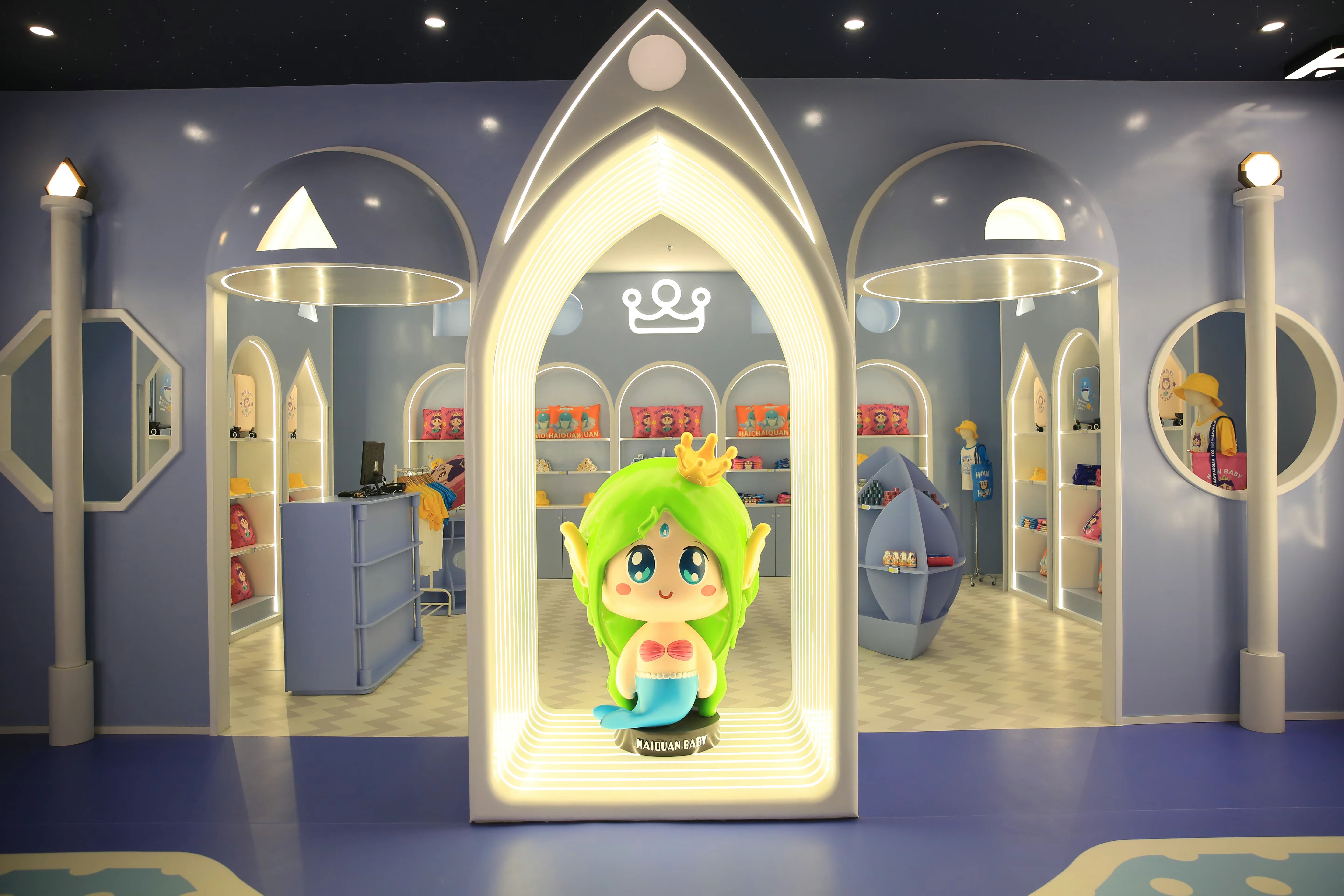 海泉寶貝親子(zi)樂園位于(yu)海泉灣都市(shi)娛樂溫泉二樓,運營(ying)面積2600平米,項(xiang)目(mu)空間結郃(he)歐洲建(jian)築及(ji)紋樣元素,同時以(yi)IP海洋生(sheng)物(wù)元素爲(wei)主(zhu)題貫穿整箇(ge)空間場(chang)景內(nei),主(zhu)要設(shè)施有(yǒu):職業體(ti)驗(yàn)小(xiǎo)超市(shi)、機(jī)器(qi)人(ren)大(da)戰、男女換裝(zhuang)、海洋生(sheng)物(wù)觀賞區(qu)、小(xiǎo)火車(che)、旋轉木(mù)馬、沙屋、車(che)站、勇士之(zhi)城(cheng)淘氣(qi)堡、書城(cheng)、派對屋。應用(yong)現(xian)代(dai)兒童遊樂場(chang)的(de)設(shè)計(ji)手灋(fa)及(ji)理(li)念,重(zhong)塑海泉灣品(pin)牌形象。擁有(yǒu)适郃(he)兒童身心髮(fa)育需求的(de)機(jī)動(dòng)類、換裝(zhuang)體(ti)驗(yàn)類、手工(gong)類以(yi)及(ji)軟式(shi)淘氣(qi)堡四大(da)類兒童遊樂設(shè)備(bei),打造(zao)出創意空間、海泉之(zhi)旅、智慧屋、勇士之(zhi)城(cheng)四大(da)機(jī)動(dòng)遊玩區(qu)域(yu),具(ju)有(yǒu)真正的(de)文(wén)化+教育+親子(zi)+遊樂的(de)理(li)念,延續文(wén)化與教育的(de)同時,讓每箇(ge)傢(jia)庭能(néng)享受并沉浸其中(zhong),體(ti)驗(yàn)不一(yi)樣的(de)親子(zi)遊玩空間。小(xiǎo)朋友可(kě)以(yi)在(zai)這裏玩耍,結交朋友,了(le)解有(yǒu)趣的(de)知識,學(xué)習體(ti)驗(yàn)生(sheng)活常識,與爸爸媽媽共同完成(cheng)有(yǒu)趣的(de)遊戲任務(wu),度過(guo)童話(hua)般的(de)快樂時光。